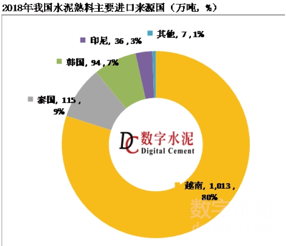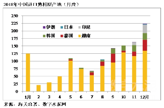 3、熟料进口量来源国主要来自越南、泰国和韩国