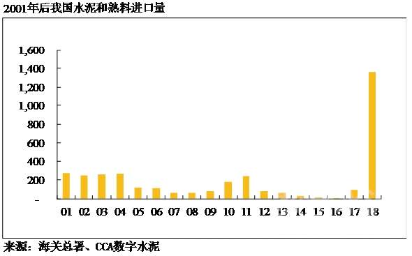 2017年以前,中国水泥年进口量最多不到300万吨,2016年更是达到了历史低谷的6.5万吨。但随着我国沿海地区熟料价格高企,2018年以水泥熟料为主要产品的进口量爆发性增长,仅当年的进口量就达到1363万吨,比2005-2017年13年进口量的总和还多。