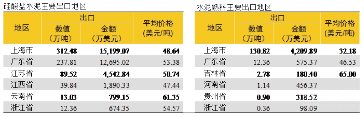 水泥作为“两高一资”(高能耗、高排放、资源型)行业,国家对水泥出口采取的是不鼓励政策,而且,虽然每年水泥出口价格逐步提高,但离岸价位(FOB价格)与目前国内价格相比并无优势,出口更多是为了维护长期的合作客户。