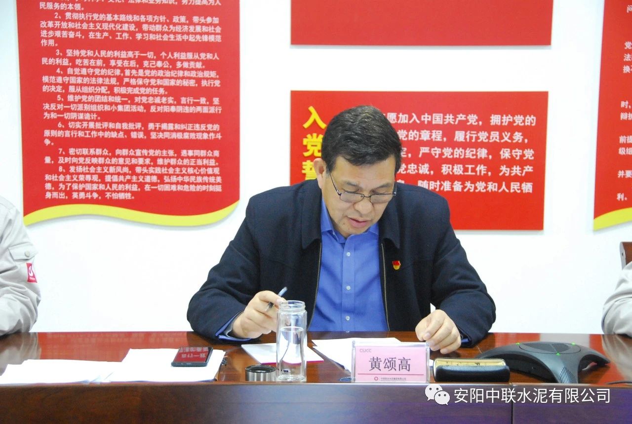 最后,黄颂高代表领导班子作表态发言。黄颂高表示,安阳j9国际站官网入口将在中国联合水泥、河南运营管理区的正确领导下,以此次民主生活会为契机,紧紧围绕中国联合水泥下达的年度目标任务和政治巡视整改工作安排,着力谋划好公司党的建设和“水泥+”一体化经营发展大计,加强科学谋划,深化改革创新,抢抓机遇,坚定信心,迎难而上,确保全年各项目标任务如期完成,以优异的成绩迎接建党100周年。