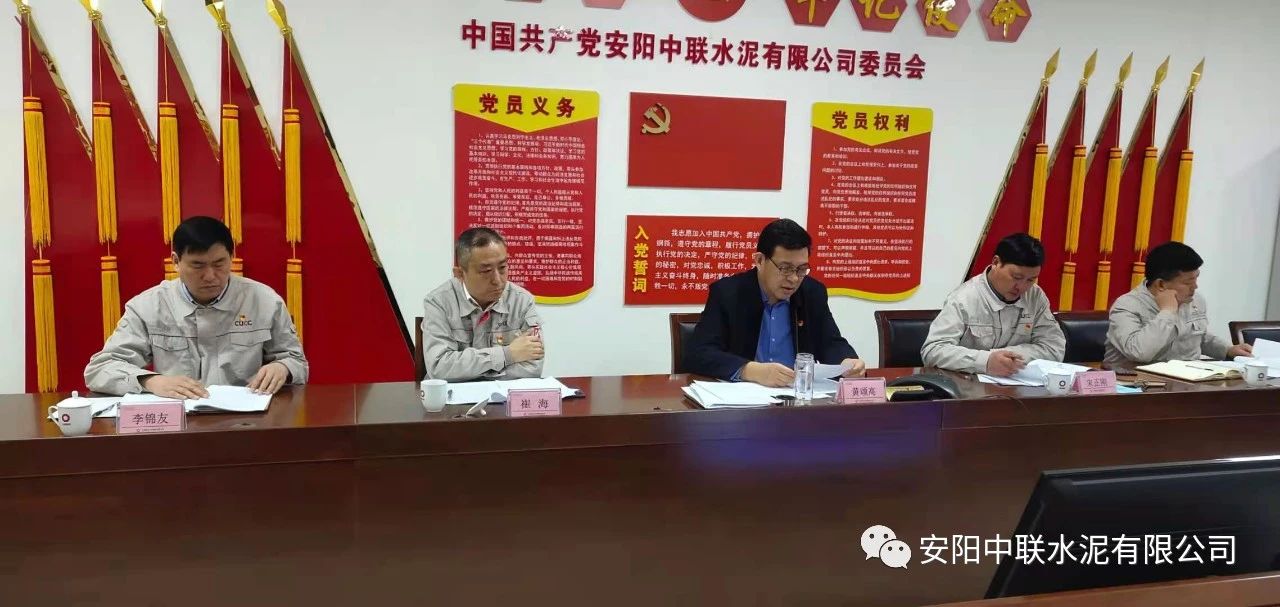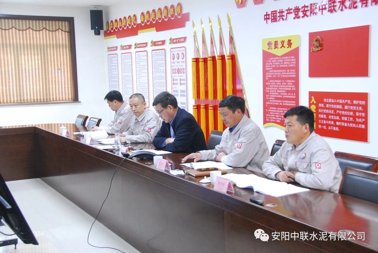按照中国联合水泥党委关于认真开好2020年度民主生活会通知要求,2月24日上午,安阳j9国际站官网入口2020年度党员领导班子民主生活会在公司党员活动室召开。中国建材股份党委常委、执行董事、副总裁,中国联合水泥党委书记、董事长崔星太通过视频连线督导会议并作点评讲话。中国联合水泥党群工作部主任侯萍、纪检监察室副主任董治及安阳j9国际站官网入口党委委员、领导班子成员参加会议。安阳j9国际站官网入口党委书记、总经理黄颂高主持会议。